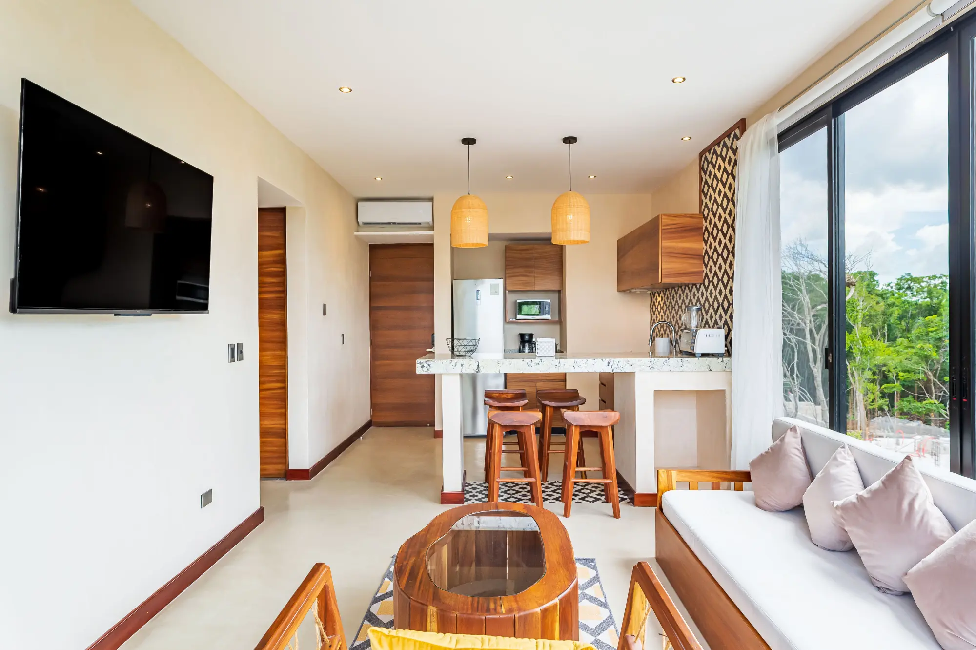 This room is fully equipped with living room, dining room and kitchen, which will make you feel at home.